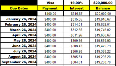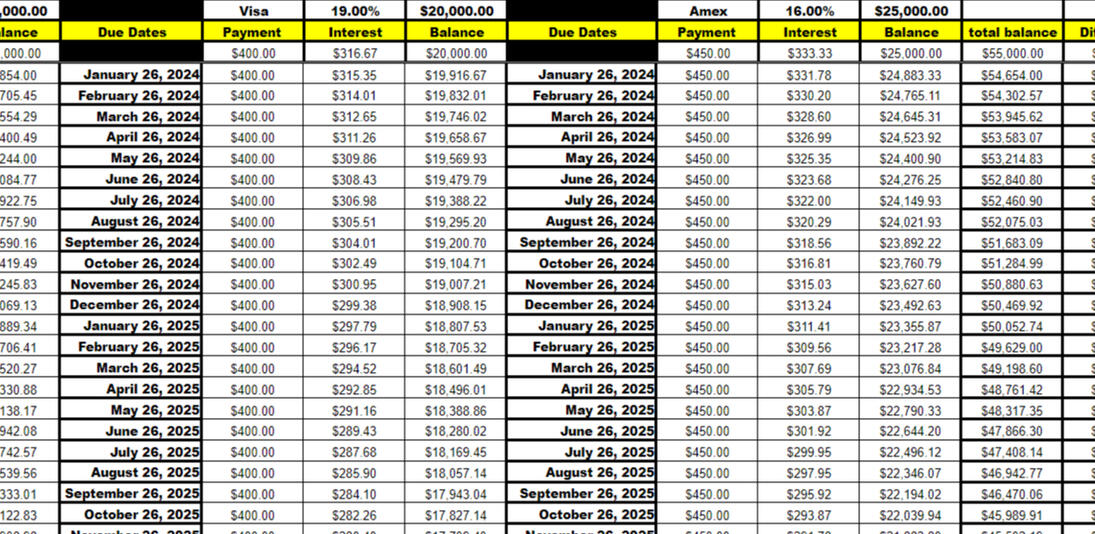 • Fields for tracking your balances, interest rates, minimum payments, and due dates• Charts showing your progress over time• Payment schedule forecasting