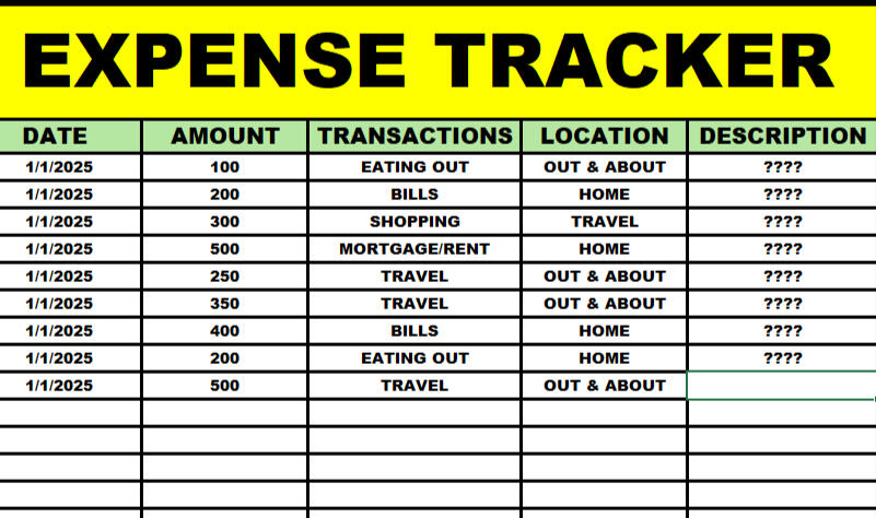 • Your daily/weekly spending logs.• Category-wise expense breakdown.• Your summary of spending habits to identify areas for improvement.
